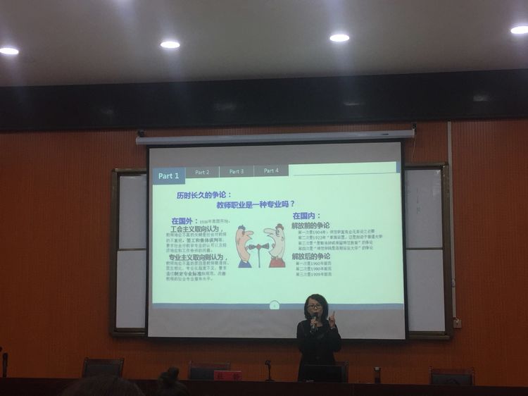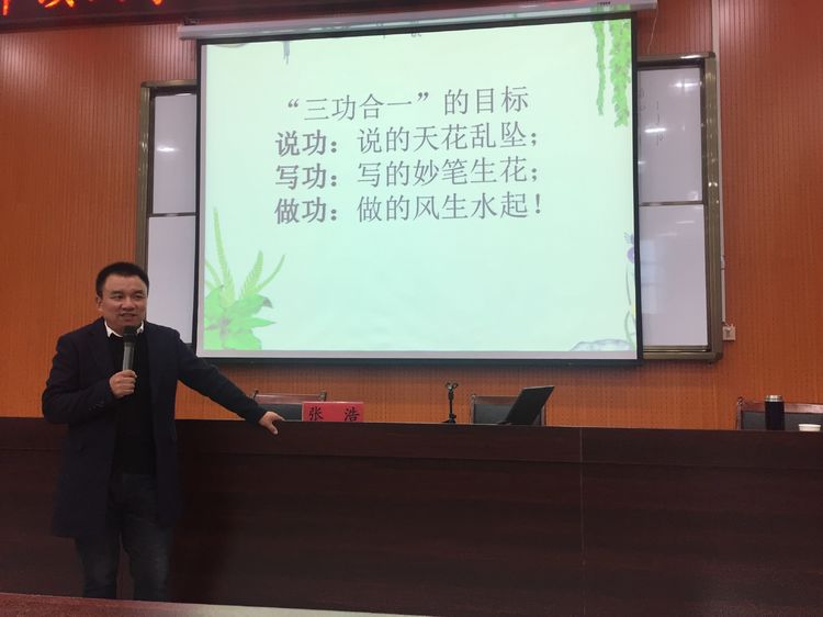 随后,张老师对韩愈《师说》中关于教师角色的表述提出了自己的见解。师者,传道,授业,解惑也!他认为教师应该传做人之道,授生存之业,解生活之惑。