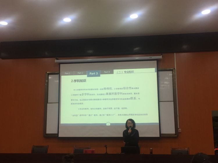 然后杜教授逐一讲解了教师需要具备的专业知识,即学科知识,教育教学知识,通识性知识等。除此之外知识还分为缄默的知识和显性的知识,教师不仅要积累显性知识,也要积累缄默知识。只有这样,才能不断提高自身教学水平。