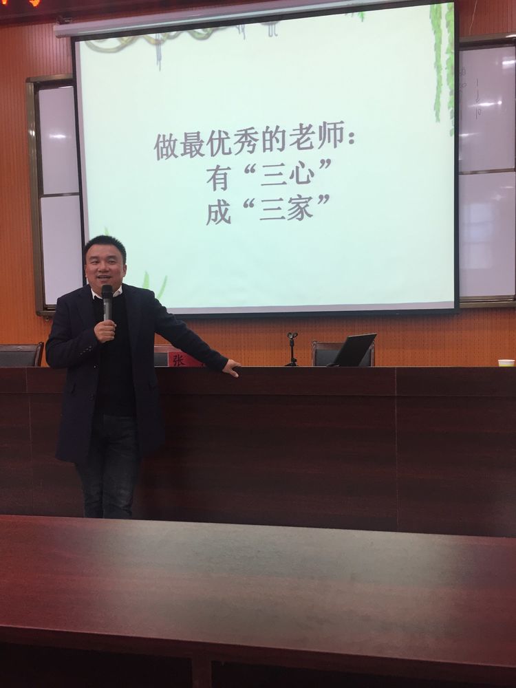 最后张老师认为做一名教师要树立“三功合一”的目标:说功,写功,做功;有三心:童心,爱心,责任心;成三家:专家,心理学家,思想家。