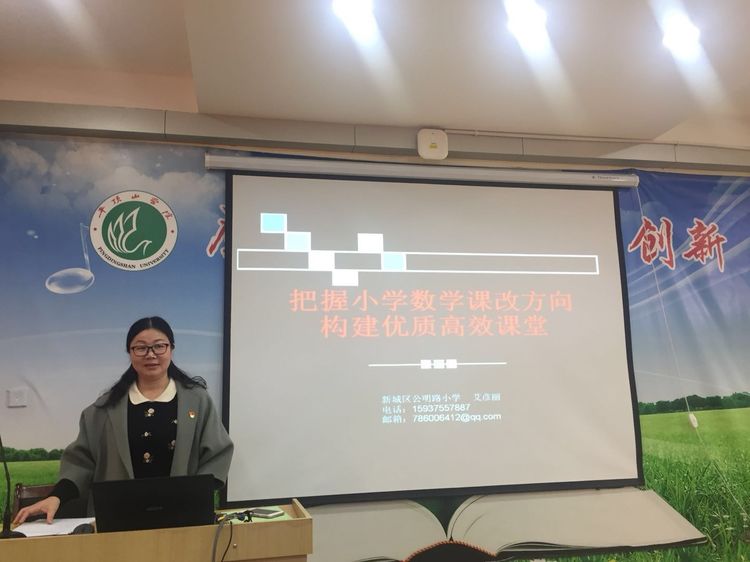 2018年11月12日下午,在新葡萄官网AMG崇文校区b404教室,国培项目邀请了新城区公明路小学艾彦丽老师为学员授课,本次授课主要讲解了如何把握小学数学课改方向构建优质高效课堂。