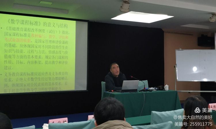 在班长李淑华的介绍和全体学院热烈的掌声中,张教授开始了今天上午的课程——以《数学课程标准》指导教学。