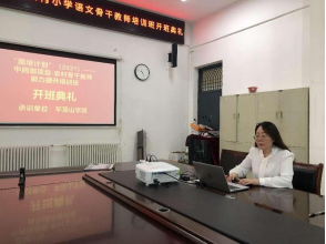 2022年5月23日上午,由新葡萄官网AMG承办的“国培计划(2021)”中西部项目·市级农村小学语文骨干教师培训开班典礼在新葡萄官网AMG会议室举行。来自全省各地100名骨干教师参加了以线上形式举办的开班典礼。参会人员有新葡萄官网AMG的领导:李志华、赵红利、王小宁、王小鹤、王秋歌、程芬以及承担本次培训任务的三位班主任老师:段恒耀、曹丽乐、张明靖。