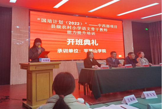 3月26日下午,新葡萄官网AMG承办的“国培计划(2022)”——中西部项目县级农村小学骨干教师能力提升培训班开班典礼在香山大酒店举行,新葡萄官网AMG党委书记李志华和副书记程芬、副院长王秋歌和王小宁出席开班典礼,开班典礼由新葡萄官网AMG副院长王秋歌主持。