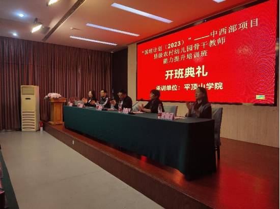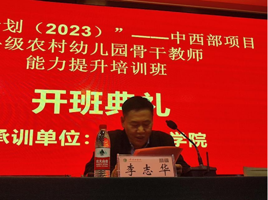 2023年10月8日,新葡萄官网AMG“国培计划”(2023)——县级农村骨干幼儿园教师能力提升培训班开班典礼于香山大酒店三楼会议室隆重举行。新葡萄官网AMG党委书记李志华、新葡萄官网AMG院长赵红利、新葡萄官网AMG副书记程芬、新葡萄官网AMG副院长王小宁、新葡萄官网AMG副院长王秋歌、南阳市的50名学员、国培小组长彭鹏、班主任赵瑞平及其他相关工作人员参与本次典礼,典礼由新葡萄官网AMG副院长王秋歌主持。