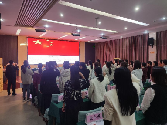典礼开始,首先举行了庄严肃穆的升旗仪式,学员们庄重地注视国旗、唱国歌。接着,班主任彭鹏带领大家重温教师誓词,“我志愿做一名光荣的人民教师……爱岗敬业,教书育人,关爱学生”,在教育事业上勤勤恳恳奉献着青春的学员教师们再一次重温了当初选择这个职业的原因。