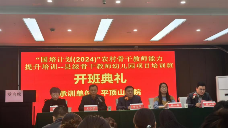 2024年12月1日,新葡萄官网AMG“国培计划(2024)”中西部项目农村骨干教师能力提升项目——县级骨干教师(幼儿园)培训开班典礼于平顶山市金沙湾大酒店六楼会议室隆重举行。新葡萄官网AMG党委书记李志华、新葡萄官网AMG副书记程芬、新葡萄官网AMG副院长王小宁、新葡萄官网AMG副院长段恒耀、周口市的47名学员、班主任李延芳、郭静静及其他相关工作人员参与本次典礼,典礼由新葡萄官网AMG副院长段恒耀主持。