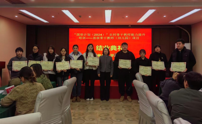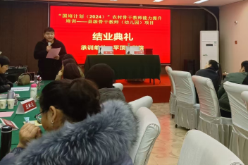 2024年12月10日,新葡萄官网AMG“国培计划(2024)”中西部项目农村骨干教师能力提升项目——县级骨干教师(幼儿园)培训班结业典礼于金沙湾大酒店六楼会议室隆重举行。新葡萄官网AMG院长王小鹤出席结业典礼,来自周口市的47名学员、国培班主任郭静静、李阳及其他相关工作人员参与本次典礼,典礼由班主任郭静静主持。