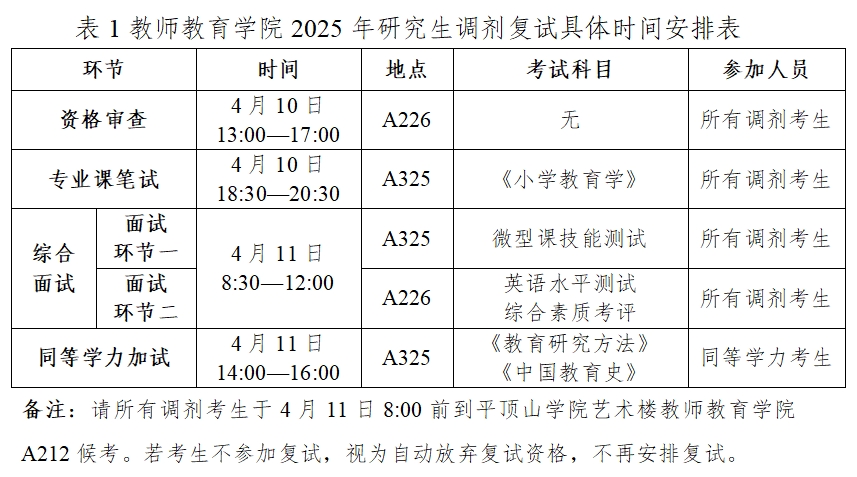 本批次调剂考生复试时间为:2025年4月10日—4月11日。具体复试安排见下表1。