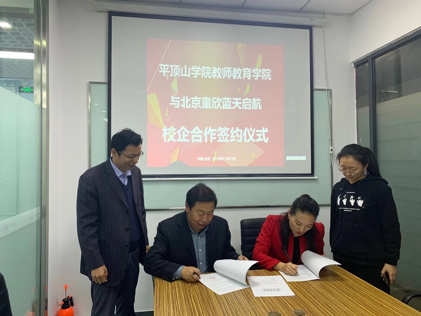 为进一步深化产教融合,增强学校发展的的后劲和活力,为企业输送高素质的人才,实现专业与产业、企业、岗位对接。2019年11月17日上午,由北京童欣蓝天启航科技有限公司与新葡萄官网AMG共同举办的校企合作实习基地签约仪式在北京蓝天启航教育科技有限公司总部顺利举行。协议的签订能够为新葡萄官网AMG学前教育专业学生提供更优质的教育实践基地,使学生开阔眼界,感受先进的教育理念及教育方法,为以后就业提供更多选择;双方同时也希望尽快开展校企合作项目,开展更深层次的合作。