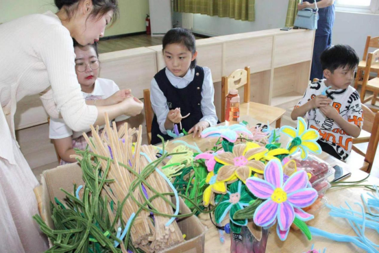 活动中,老师首先示范了扭扭棒花朵的制作过程,孩子们发挥自己的创意,感受着艺术创作的奇妙。同时家长也陪伴孩子,鼓励孩子一起完成作品。让孩子们在活动中体会动脑动手的快乐,激发探索热情,感受艺术创造的无限可能。活动富有互动性和创造性,给儿童们带来了全新的艺术体验,深受家长和孩子的欢迎。通过活动,孩子们与扭扭棒有了亲密接触,激发了孩子们的兴趣,营造了艺术创作、学会感恩的氛围。活动最后为每个小朋友都发放六一大礼包,希望大家都能欢度六一。