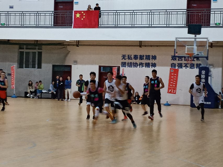 伴随着响亮的号角声吹起,双方队员迅速进入状态,你来我往,激烈交锋,呐喊声与欢呼声此起彼伏。经过长时间训练,我院篮球队员们早已磨炼出顽强的意志,并且养成了优秀的团队精神。他们有时奋起直追,有时严阵以待,队员内部默契合作,相互鼓励,商讨策略。场上比分差距也不断缩小,比赛逐渐地进入白热化阶段,两队均咬紧牙关,尽力抓住机会,全力奋进。