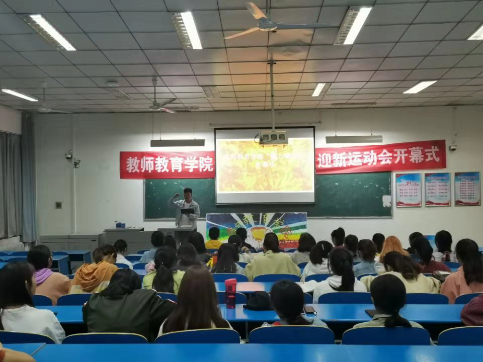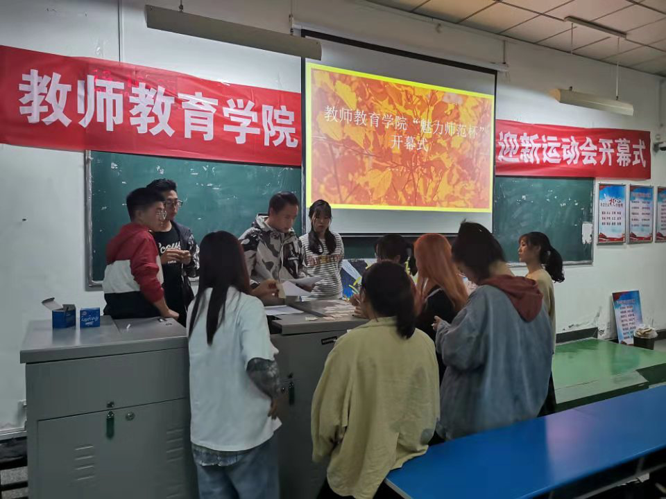 10月21日晚七点,新葡萄官网AMG“魅力师范杯”开幕式在1106教室举行,所有参赛选手和体育部工作人员参加开幕式。
