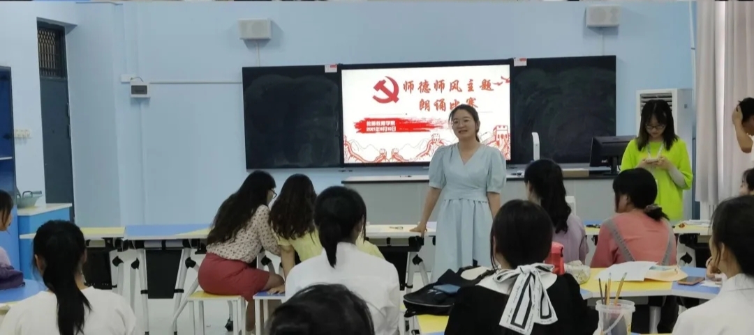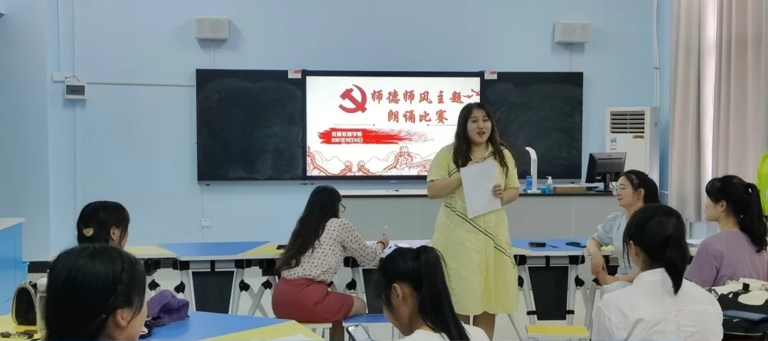 此次比赛与我院第二课堂《普通话实训》课程相结合。在活动过程中,我院20级学生积极参与,深情融入,激情洋溢。伴随着优美柔缓的音乐,学生们从不同的角度阐述了对师德师风的理解和感悟,充分展现了我院学子积极进取、乐于学习的风貌。参赛者们满怀热情、声情并茂的朗诵收获了台下阵阵掌声。