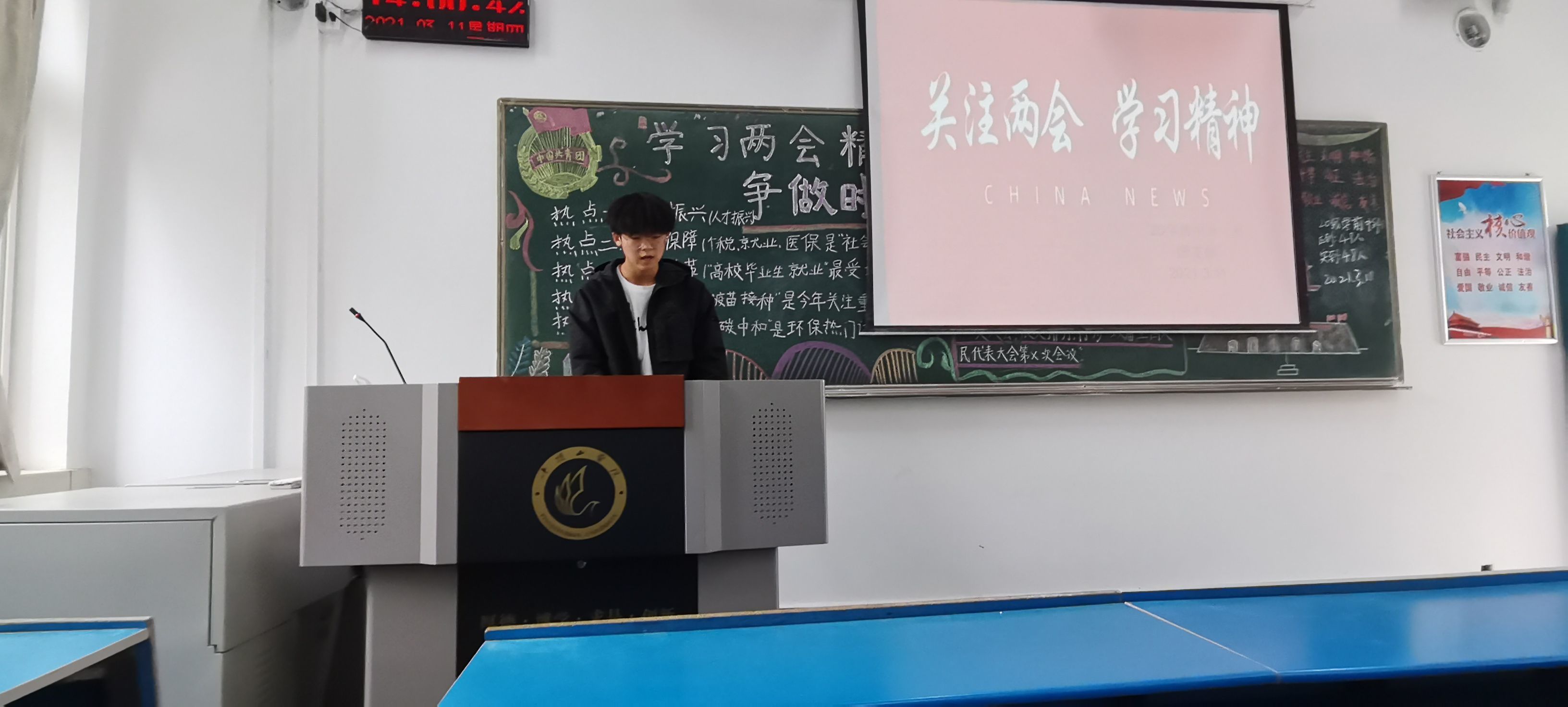 活动伊始,主讲人简要说明本次活动的流程并从两会关键词开始介绍,讲述了两会的主要内容。在活动过程中,主讲人通过提问、播放两会视频等方式调动同学们的积极性,展现了当代大学生的朝气。活动接近尾声,主讲人对本次活动进行了总结。