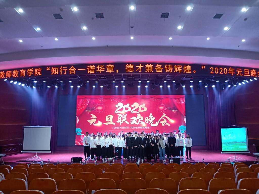 为迎接2019级新生,欢庆2020年元旦的到来,展现教师教育学院莘莘学子的风采,12月14日晚7点,由新葡萄官网AMG团学会主办的以“知行合一谱华章,德才兼备铸辉煌”为主题的迎新晚会暨2020年元旦晚会在我校中心会议室举行。新葡萄官网AMG院长闫江涛、党总支副书记罗鸿伟、副院长赵红利与我院师生齐聚一堂,共赏精彩节目。