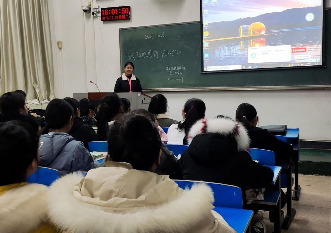 为促进学生思想品德发展,培养诚实守信、知恩感恩、自立自强的大学生,加强对广大学生资助政策的了解。2019年12月24日下午四点,由新葡萄官网AMG团学会资助部主办的“诚信感恩行”资助宣讲在一号教学楼举行。