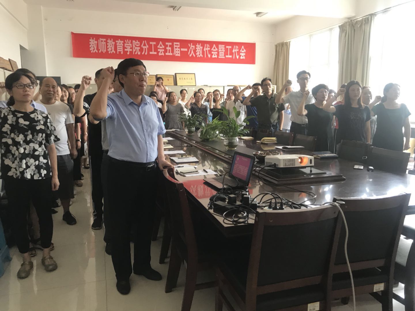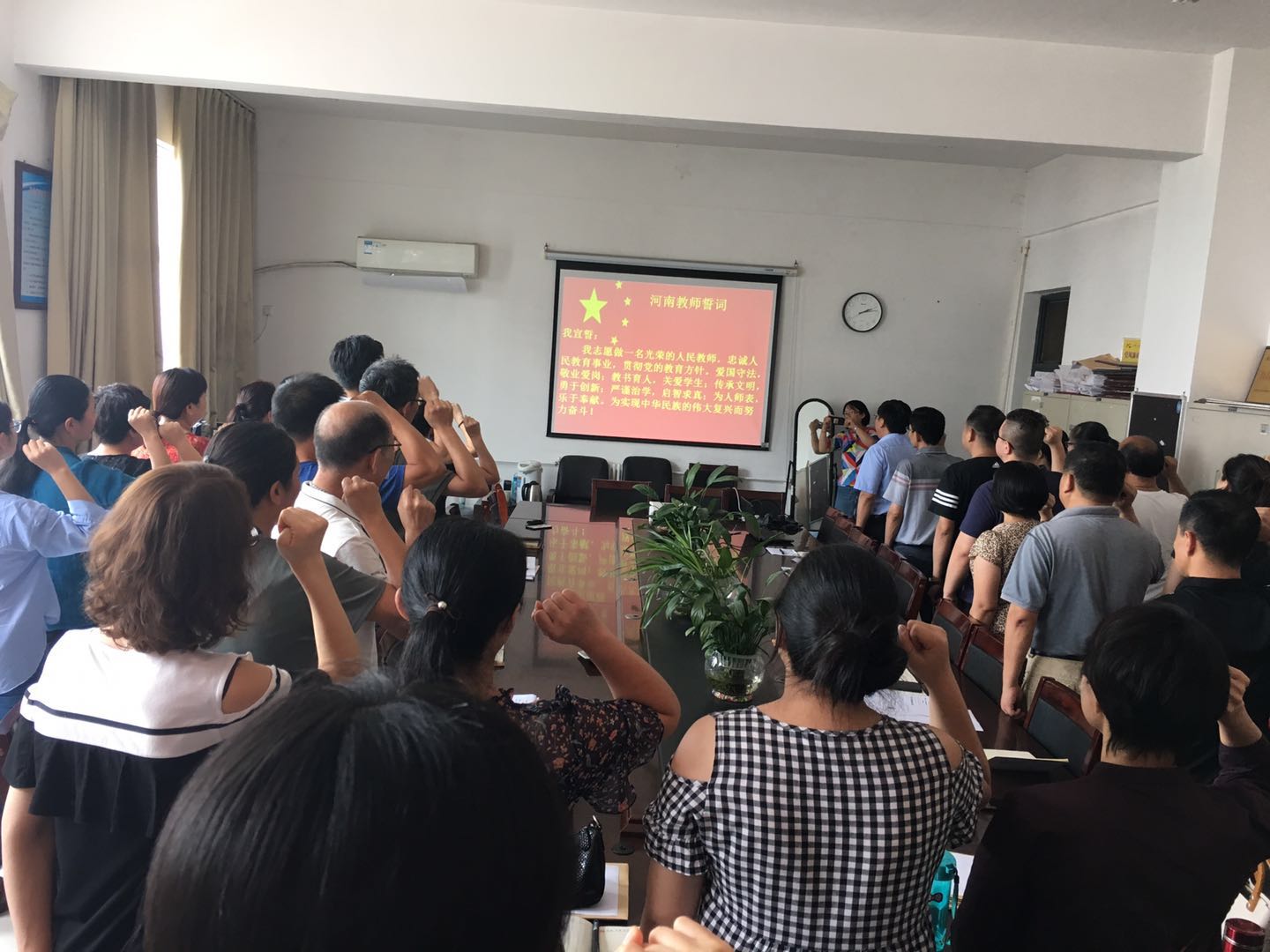 在教师节来临之际,为进一步提高广大教师师德水平和业务能力,增强教师教书育人的荣誉感和责任感,9月6日下午,新葡萄官网AMG全体教师在会议室举行重温“河南教师誓词”活动。