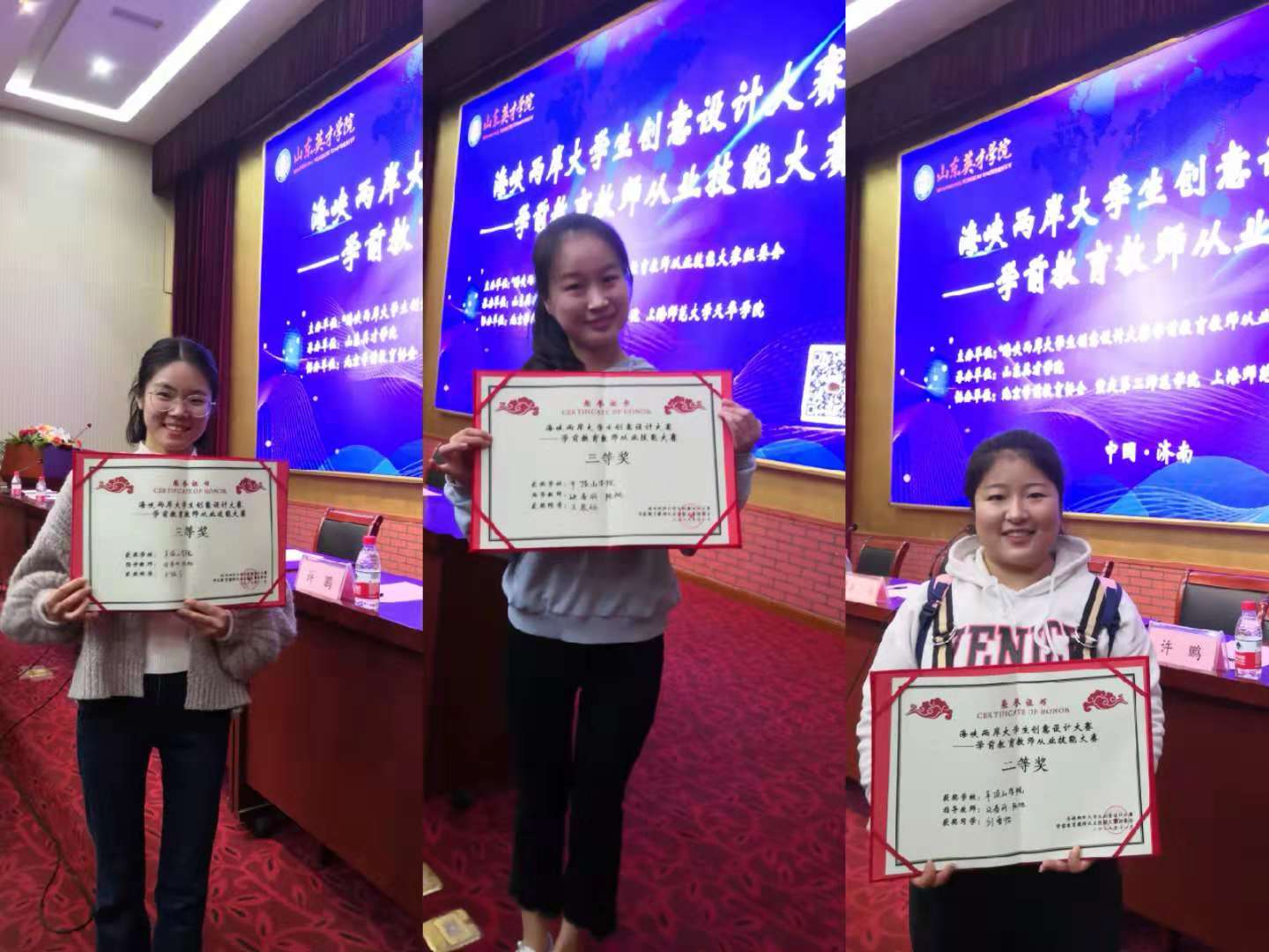 我院学前教育专业刘雪怡、于依可和王晨恒代表学校参赛。本次大赛共分模拟授课、自创故事讲述、才艺展示三个环节进行,主要考察参赛者教学内容讲述、教学方法与手段、教学效果、创意设计、材料运用、讲述技巧、器乐演奏、现场绘画能力等多方面的教育教学能力。经过激烈角逐,我院学生获得二等奖1项,三等奖2项,展示了我院学前教育专业学生扎实的职业技能和良好的精神风貌。