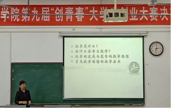 报告伊始,张老师向学生们提出了一个问题:数学是什么?进而引发学生们的思考。她指出数学是一种方法、语言和工具,是学科间共同的基础,不但能够锻炼人的逻辑思维能力,并能提高敏捷率。接着她从古埃及古希腊、雅典时期、中国古代、近代数学四方面讲述了数学漫长的发展历程。最后张老师讲解了在小学教学中常见的数学思想及带来的启示,并分享了在小学教学教育中的注意事项,使学生们更加深刻地领会到解题过程中所隐含的数学思想方法以及由此形成的数学知识体系,切实提高了学生的数学素养和解题能力。学生们认真听讲,受益匪浅。