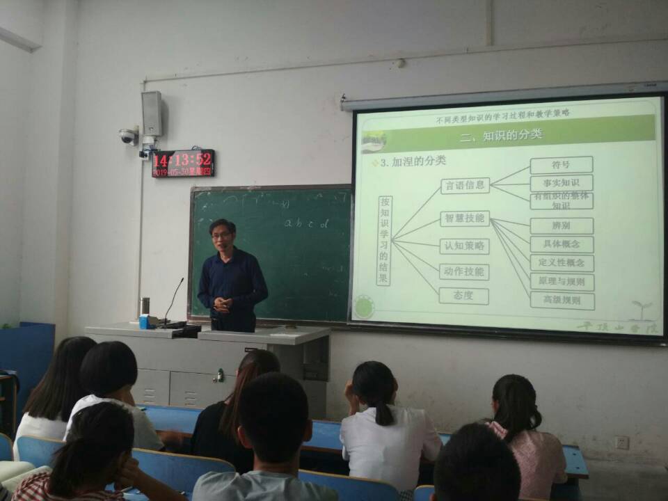 5月30日下午,新葡萄官网AMG在L209教室开展以《不同类型知识的学习过程和教学策略》为主题的学术报告。本次活动由该院李兴武副教授主讲,18级全体小学教育专业学生参加。