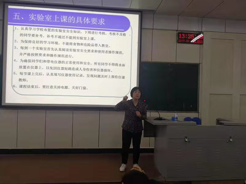 讲座伊始,赵院长向新生介绍了学校常用实验室的分类、用处和安全隐患。她告诫同学们在上课时一定要遵守实验室的上课要求,遵守实验室各项规章制度,注意个人和实验室安全。提醒同学们课程结束后,要注意关掉电源,关好门窗。她详细地向同学们解释了电气火灾的起因往往是因为同学们没有遵守实验室的相关规定造成的,为新生们敲响了警钟。新生们表示受益匪浅,并承诺会切实做到遵章守纪,提高安全意识。