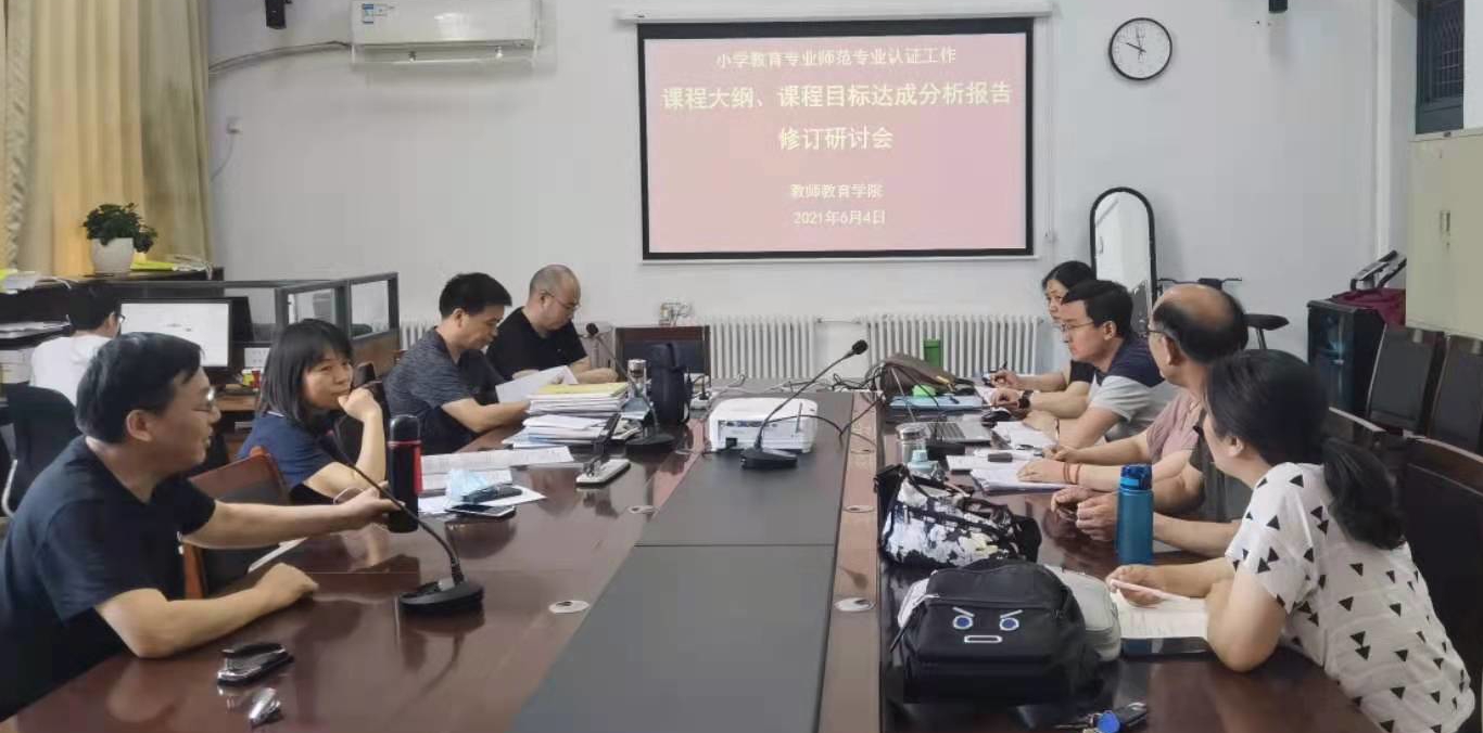 会上,小学教育专业负责人段恒耀老师首先传达了洛阳师范学院孟宪乐主任对我院部分课程大纲、课程目标达成分析报告等材料的修改建议,各门课程负责人对以上材料的修订过程和存在的困惑进行了汇报。大家对各门课程教学大纲、课程目标达成分析报告的修订集思广益,提出适合本门课程的改进意见和建议。